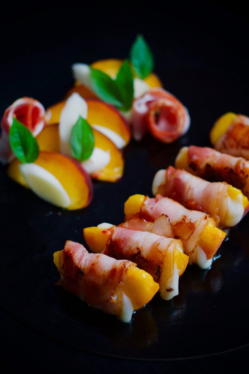 •персики •бекон •сыр Моцарелла ______ Персики режем на дольки. По стенкам каждой дольки выкладываем кусочек сыра (с обеих сторон). Обматываем беконом (как можно плотнее). Обжариваем на сухой сковороде до корочки на беконе (2-3 мин в целом). Приятного аппетита! ________ СЫРНЫЕ КОНВЕРТИКИ ИЗ ЦУКИНИ: