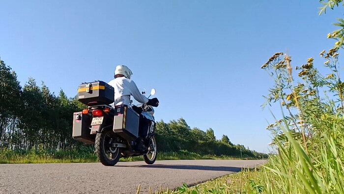 Направили меня давеча из Питера в командировку в Нижегородскую область, и, совместив полезное с приятным, я поехал туда на мотоцикле. Ни о чём не жалею, но… Я очень тяжело переношу жару и эти четыре дня дороги под непрерывно палящим солнцем и при температуре +30 и выше стали настоящим испытанием и проверкой моей подготовки. Я оказался готов. Белый шлем и белая хоккейка поверх кроссовой черепахи создавая максимальную защиту практически не давали шансов солнцу нагреть меня своими лучами. А периодически выливаемая в шлем и за шиворот вода начинала работать как кондиционер, едва я трогался с места. Так и ехал по 700км в день с остановками на заправиться, попить и облиться. Но навстречу мне пролетали мотоциклисты либо в футболочках, либо в чёрных кожаных куртках, и мне было страшно за первых, и жарко за вторых. А как вы спасаетесь от солнца и жары на мотоцикле? Пост автора Cepewa. Узнать, что думают пикабушники.