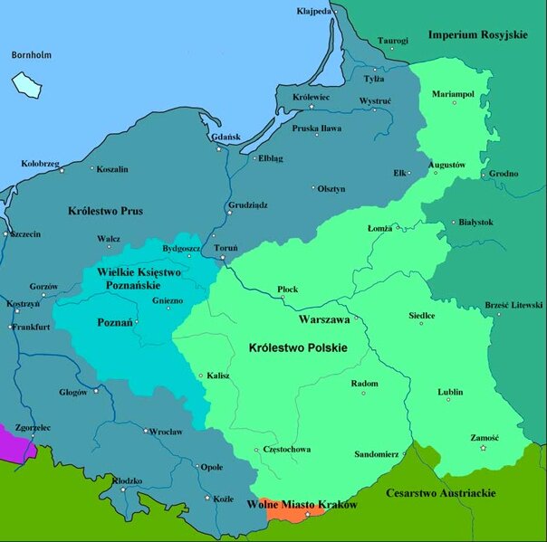 Гораздо интереснее роль Пруссии во всей этой заварухе, почему часть Восставшей Армии ушла именно в Пруссию? Союзники? Мы почему-то привыкли считать, что пруссы - это немцы, однако на картах начала 19 века видно, что на землях Королевства Пруссия практически отсутствуют немецкие названия, а преобладают славянские. Тот же Кенигсберг имеет совершенно другое название - Кролевец. Прусы- не немцы, а славяне?