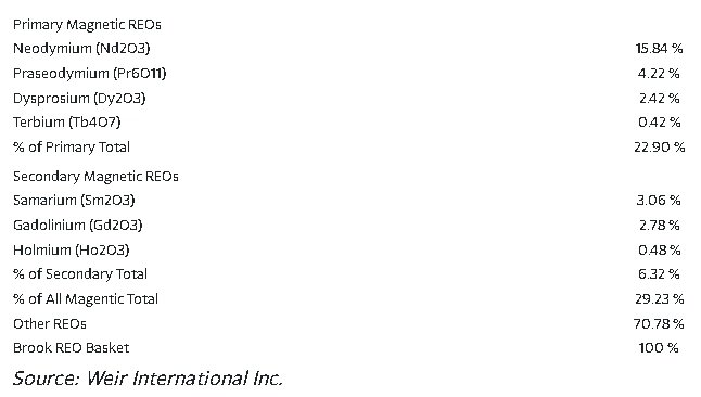 Ramaco Resources, Inc. (METC, NYSE, есть на бирже СПб) добывает и продает металлургический уголь. Однако, как стало известно в мае, шахта Брук в Шеридане, Вайоминг обладает значительным запасом редкоземельных элементов: неодим, празеодим, тербий и диспрозий. Общий расчет стоимости запасов на основе старых данных был предложен тут. В настоящий момент активы связанные с добычей редкоземельных элементов выделены в отдельные акции, тикер METCB. Кто ранее участвовал в данной идее, получили по 1 акции METCB на каждые 5 акций METC. Ramaco Resources (NASDAQ: METC) заявила, что уровень запасов редкоземельных элементов в шахте Брук в Вайоминге увеличился почти на 50% по сравнению с его первоначальной оценкой, раскрытой в мае, по словам аналитиков в Mining Consultancy Weir International. Структура РЗЭ в шахте Брук: Основываясь на дополнительном отборе керна и химическом анализе, Weir International также определила, что объем запасов по разведке РЗЭ увеличился почти на 50% до 0,9 – 1,2 млн тонн о