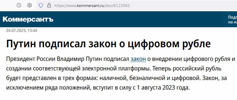В России появился "цифровой рубль" - Путин еще в июле подписал закон об операциях с такими рублями.
