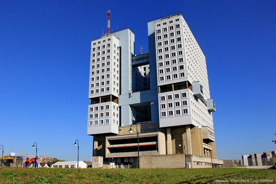 Дом Советов Николай Семенович Коновалов - секретарь обкома КПСС являлся автором идеи воссоздать в Калининграде громадное сооружение, которое бы утвердило власть Советов в бывшем "логове фашистского зверя". Руководил стройкой, а так же являлся автором проекта Дом Советов - Юрий Александрович Моторин. Предполагалось, что в здании разместятся все чиновники города. В южной башне, которая была направлена в сторону Преголя, планировали разместить Обком. В северной башне, окна которой смотрят на Нижнее озеро разместили бы Облисполком. Многие члены Советов, занимавшие высокие посты, уже заранее знали, где будут их кабинеты, и пожелания учитывались при проектировке. По словам Брускова, для опалубки здания, привезли специальную фанеру из Финляндии, которая позволила отлить настолько гладкую поверхность бетона, что ее можно было бы сравнить с полированным деревом. Подрядчики были из Новгорода, алюминиевые витражи из воронежа, металлоконструкции - из Беларуси. Дом Советов еще называли "кузница к