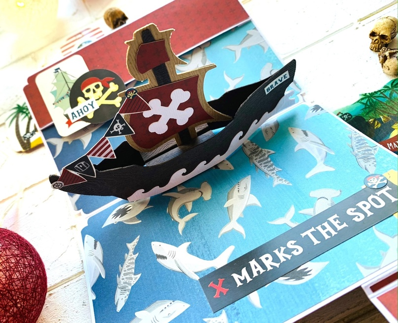 Всем привет! С вами Яна Медведева и я делюсь процессом создания пиратской поп-ап открытки). Макеты для вырезания при помощи плоттера и вручную в комментариях к посту.
