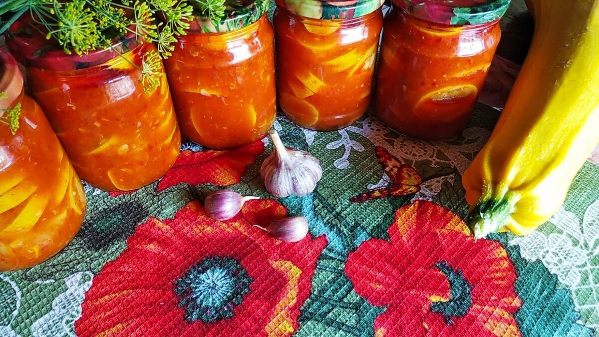 Всем здравствуйте! В конце лета, когда начинается сезон кабачков, хозяйки в поисках рецепта, как же вкусно заготовить этот овощ🤔 . Я для себя такой рецепт нашла уже давно и теперь пользуюсь им каждый год👍. В данном рецепте кабачки закатывают в томатной пасте, а изюминкой становится лёгкий привкус чеснока, который украшает это блюдо и придаёт пикантность. Для приготовления нам потребуется (рецепт на 5 пол литровых баночек): Подробный текстовый рецепт с фотографиями этого салата читайте здесь ⬇️⬇️⬇️⬇️⬇️⬇️⬇️⬇️⬇️⬇️⬇️⬇️⬇️ Подробный видеорецепт этого салата смотрите здесь ⬇️⬇️⬇️⬇️⬇️⬇️⬇️⬇️⬇️ Приятного аппетита ! Спасибо всем, кто заходит на мой канал. Не забывайте подписываться ✍️, ставить 👍 и писать комментарии . До встречи !