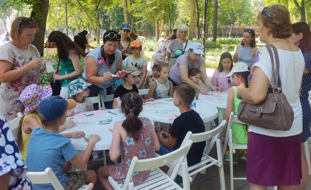 Мастера декоративно-прикладного творчества Воронежа в парке «Орленок» провели 9 мастер-классов для маленьких жителей нашего города и их родителей, а также порадовали воронежцев выставками своих работ. Несмотря на аномальную жару, царившую в регионе, мастера все минувшие выходные учили детей приемам работы с эпоксидной смолой, глиной, делились секретами изготовления магнитиков и оригами, различных аппликаций из цветов и песка, расписывали деревянные фигурки и, конечно, разрисовывали пряники. Принять участие могли дети всех возрастов. – Очень рады, что подобные мероприятия регулярно проходят. По средам мы ходили на мастер-классы, организованные библиотеками Воронежа, в прошлое воскресенье – на мастер-класс по созданию ловцов снов, а сегодня расписывали пряники и работали со штампами для глины, – поделилась впечатлениями Татьяна Теодорович. Дети Татьяны – Николь и Константин – разделяют мнение мамы, хвастаясь своими работами и рассказывая, что девочке больше всего понравилось украшать та