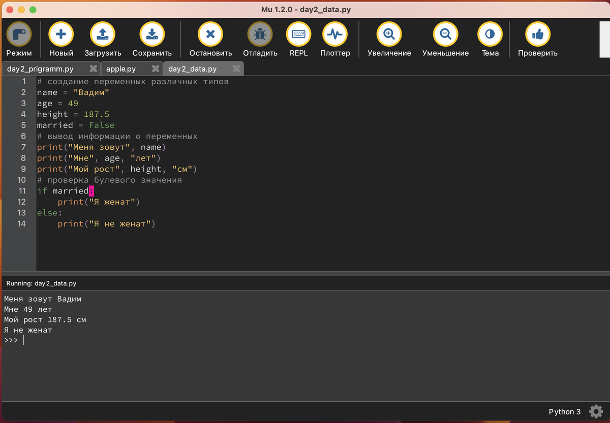 День 2. Типы данных: числа, строки, булевы значения.