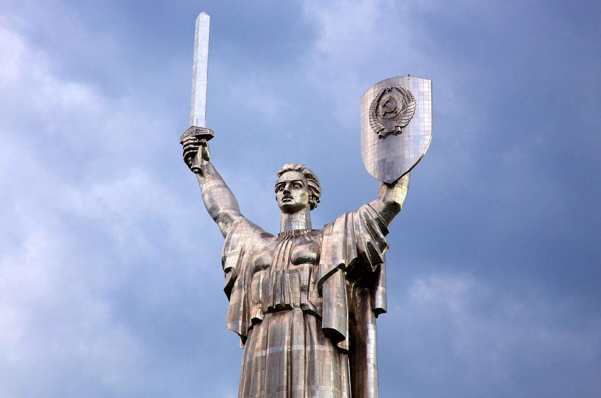 Если бы построили своё, не было бы вопросов. А так, что это? Советская скульптура, исполненная автором-коммунистом в узнаваемой советской манере - и вдруг. То ли зубья, то ли вилы, но явно что-то недоброе. Ну создайте скульптурный образ украинской родины-матери, равноценный советскому. За 30 лет не озаботились? А теперь кинулись герб менять. Можно еще по-быстренькому в жёлто-голубой перекрасить. В "Свадьбе в Малиновке" головные уборы меняли, а тут - гербы. Удобно! Я думаю, советский герб где-то недалеко положили, а то мало ли. Почему это так неприятно смотрится? Потому что тело прежнее, всем хорошо знакомое, а символ чужой. Кто хоть раз наблюдал одержимого, тот знает этот эффект. Ты видишь человека: облик его тебе знаком, но взгляд, выражение лица, голос - всё выглядит зловеще. Перед тобой уже не твой хороший приятель, в нем поселился кто-то. Такое же превращение произошло с народом. Переназвали города, улицы, учебные заведения, изменили людям имена и фамилии - и лик страны незаметн