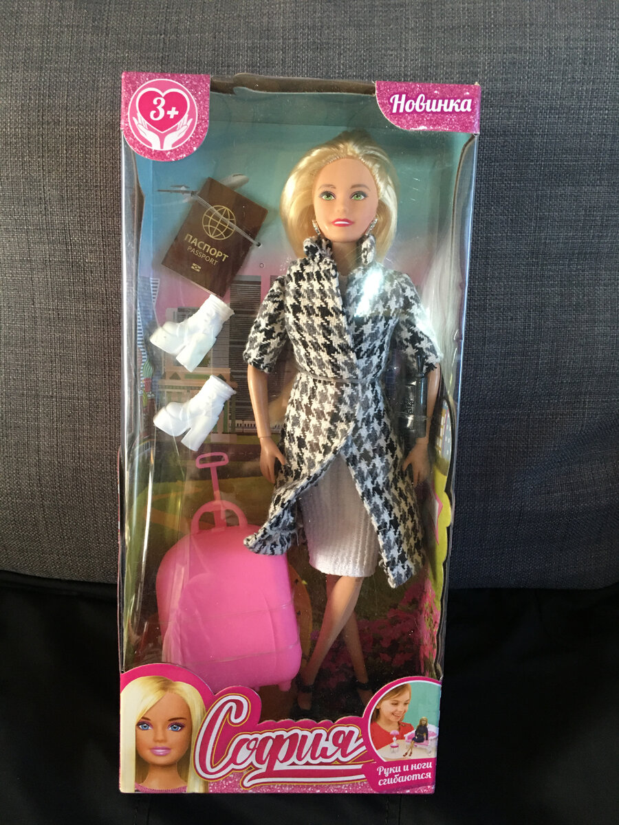 Софию я приобрела с целью посмотреть что это вообще за "зверь". Выглядит на промо-фото вполне симпатично. Я видела живьем коробки в детских магазинах - похоже на вполне качественный товар. И решила таки попробовать познакомиться лично. Я выбрала вот такую Софию путешественницу в красивом аутфите и с достойными аксессуарами.