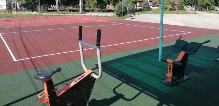 На пришкольной территории установили десять тренажеров. На каждом из них есть табличка-инструкция по использованию, а также предусмотрено место для того, чтобы поставить воду.