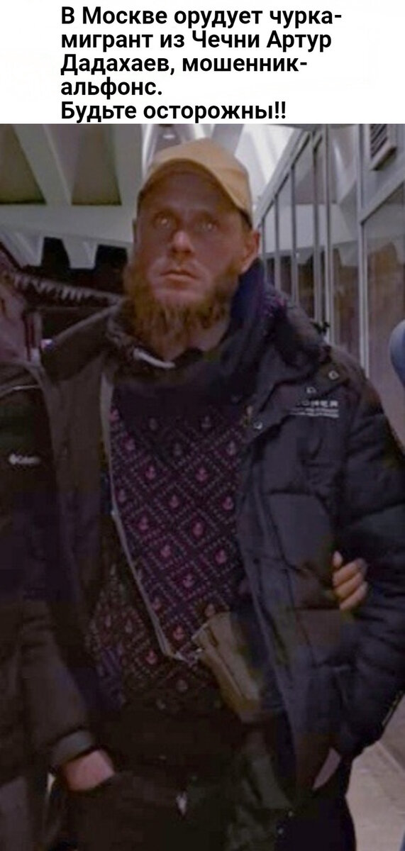 "Аферист Артур Дадахаев, 1991 г. р. сидит на разных сайтах знакомств, на которых присасывается к женщинам развести, ищет, где перекантоваться, пожить, поесть. Чуть ли не с первого дня знакомства предлагает жениться, хотя сам как выяснилось женат. Имеет троих детей в Чечне.. Стреляет деньги, причём сначала небольшие суммы. Уроженец Чечни. Любит жить у женщин и за их счет и на их же территории. Не где не работает. Предпочитает женщин постарше. Любит пустить слезу, встанет даже на колени, чтобы вызвать жалость к себе. Постоянно меняет номера телефонов" - .рассказала пострадавшая женщина и в напутствие другим быть осторожны и внимательны, обходить чурак стороной.