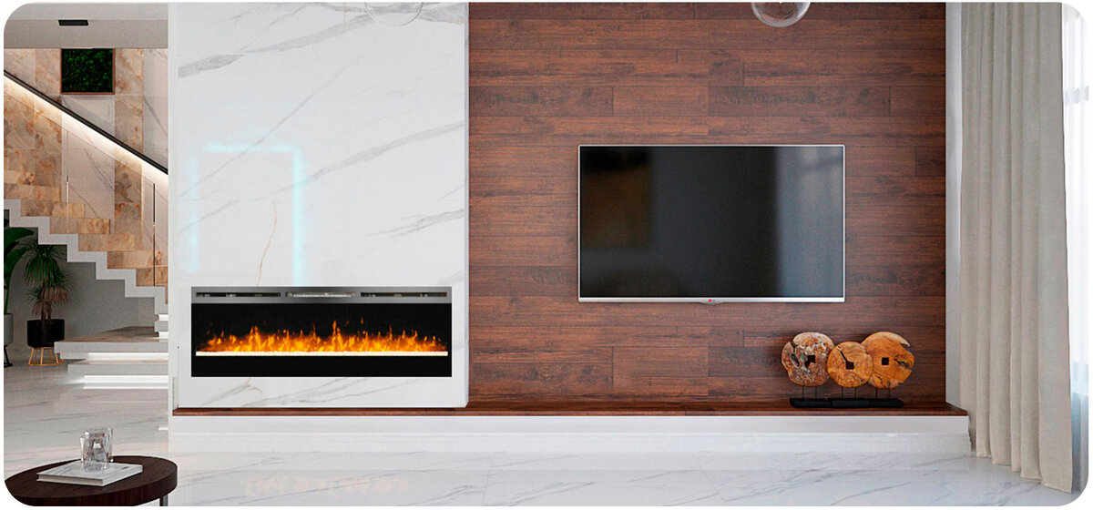 Настенный камин в гостиной
