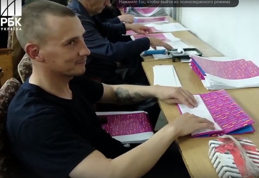 В кадре пленный, которого обозначили, как «Артем, Кемерово», собирает вместе с другими мужчинами картонные пакеты. Очевидно, что задачей журналистов было показать хорошее отношение к пленным и благоприятную атмосферу в украинской армии.
