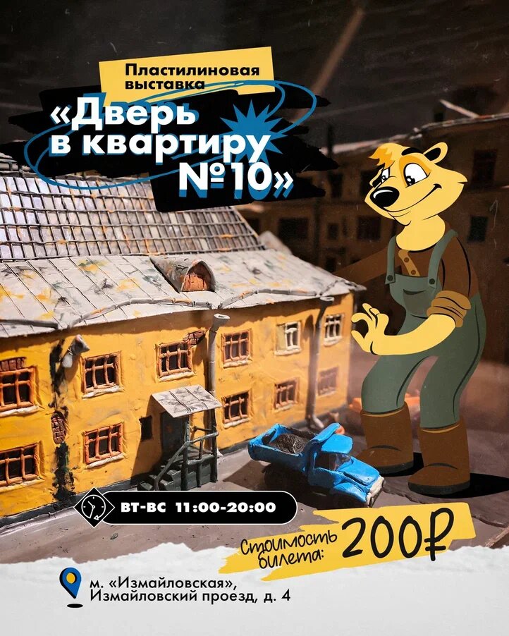 «Дверь в квартиру №10» — выставка художника Алексея Микулина, который с детства создавал собственные миры с локациями и героями, используя при этом всем знакомый материал — пластилин. Теперь же он преобразует старые московские архитектурные мотивы в пластилиновые миниатюры.
