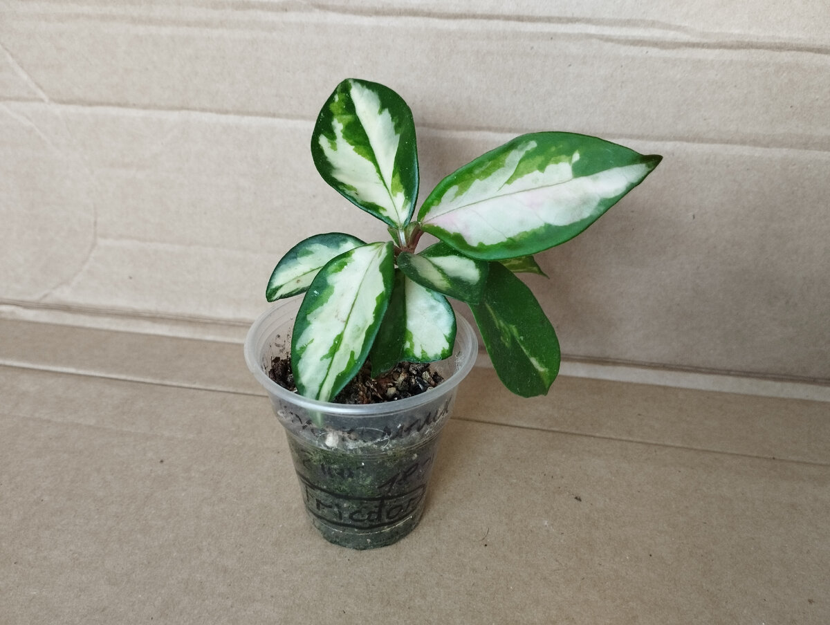 Поехали дальше. Разобрала второй "отпускной" контейнер. После моего возвращения они, конечно, стояли уже в открытой коробке, я поливала и не было необходимости держать особую влажность. 11.Hoya tricolor. Три не вижу, пока би))) 12. Hoya australis liza. Вот красотка, популярная, а я к ней равнодушна. Может передумаю, посмотрим. Если ближе к окну поднести, получается фото более реального цвета. 13. Скорее всего это Walliniana. Почему-то у меня на моей же этикетке вопросик нарисован. 14. Hoya latifolia "Pot of Gold" или Macrophylla. Я пока не разбиралась когда называют макрофиллой, когда латифолией. 15. Hoya carnosa cv. Brasil, позеленевшая еще до меня. Такой черенок подарили. Новый рост видите? А он есть! Втихаря дала новый листик, снизу. 16. Hoya Griffitii ждëт черенкования. Потому что этого монстра непонятно как размещать - узлы такие тяжёлые, что перкворачивают горшок. 17. Wayetti tricolor. Похоже, дамочка требовательна к поливу. Мои вечные циклы засушила-залила не еë история. Пост