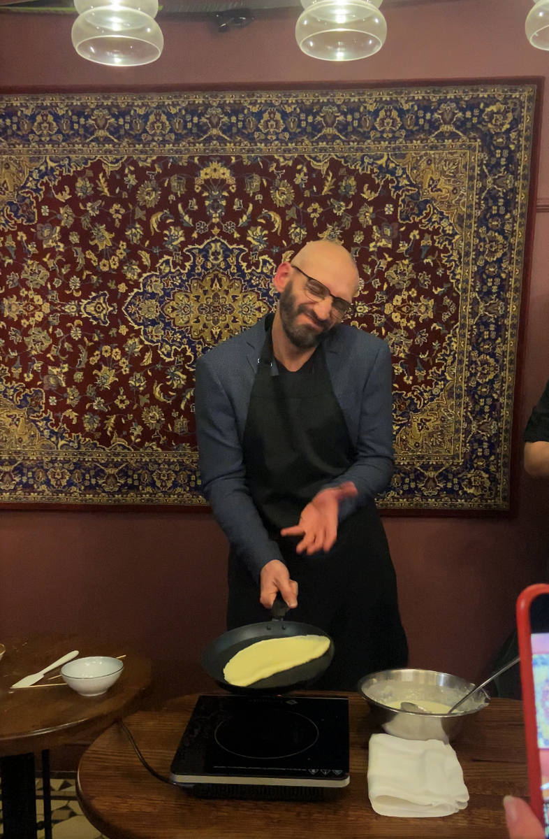 Вот с тонкими блинчиками всё просто, они бывают часто в кафе и еще с разными дополнениями. Готовить их проще и быстрее. Я даже сам пробовал...но в моем случае, главное не победа, а участие. Думаю, моё лицо красноречиво показывает мои способности печь блинчики. А особенно, мои умения переворачивать их в воздухе.
