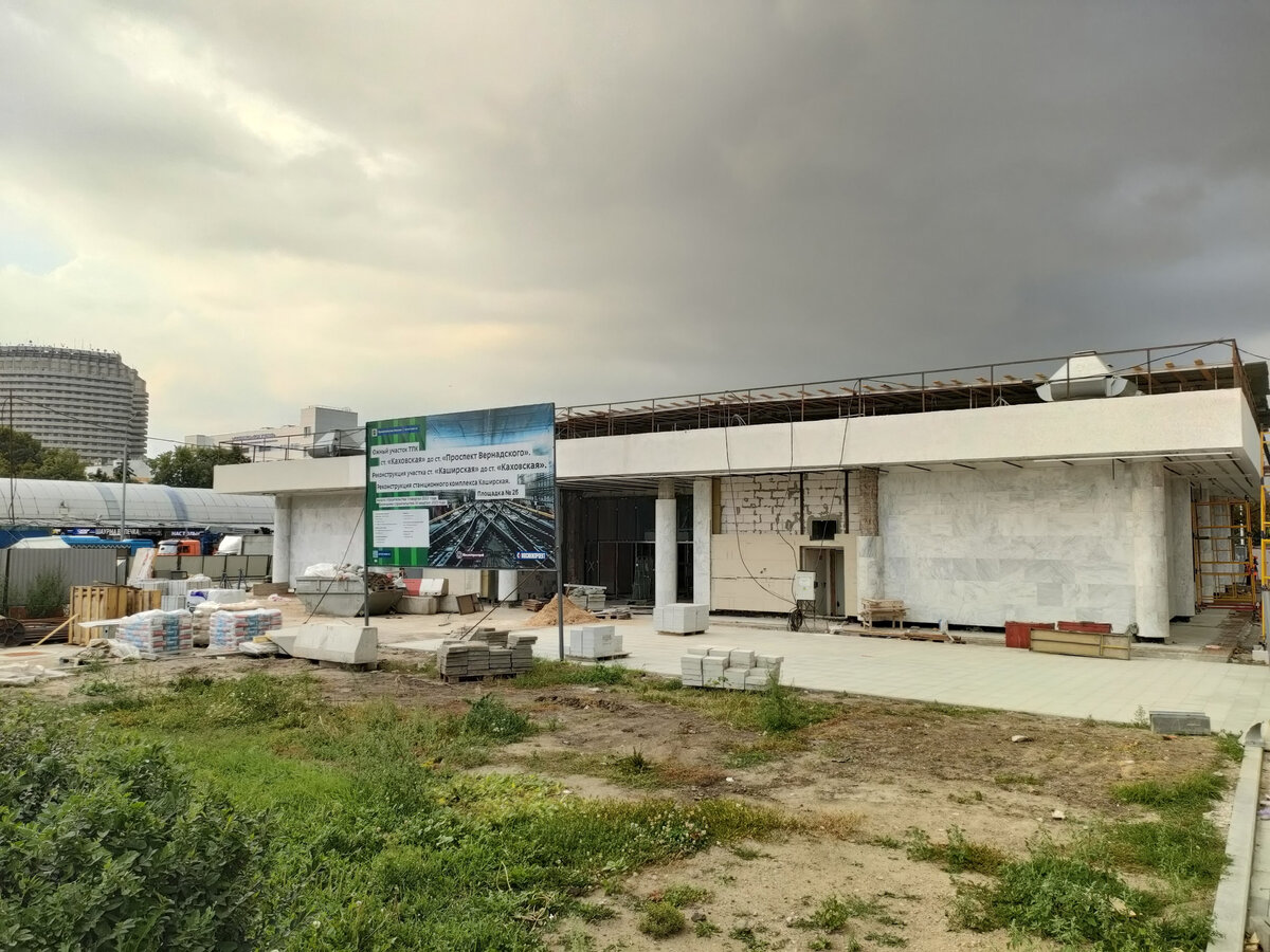 в информационном сообществе "РМТМ" и слежу за развитием транспортной инфраструктуры Москвы. Хочу поделиться новостями о ходе полной реконструкции северного вестибюля метро станции метро "Каширская", которая является пересадочной между Большой кольцевой и Замоскворецкой линиями. Итак, на северном вестибюле этой станции демонтировали постоянное ограждение и приступили к благоустройству прилегающей территории. Идёт укладка гранита на цоколь и ступени, завершаются гидроизоляционные работы. Также ведётся облицовка фасада и колонн, установлено витражное остекление входных групп. На верхнем перекрытии завершаются гидроизоляционные работы, разбирается временный деревянный навес. Строители размеренными темпами выполняют все запланированные работы. Открытие северного вестибюля д