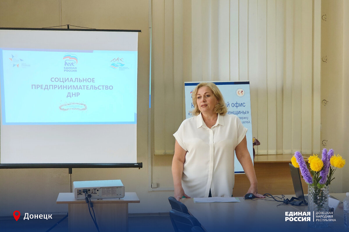 Социальное предпринимательство направлено на решение социальных проблем граждан и общества. Для нашей Республики - это новая и очень нужная область. Поэтому в коллективном офисе «Женщина для женщины», созданном на базе Женского движения Единой России, провели лекцию по этой теме для участниц партпроекта. Их познакомили с типами и сферами социального предпринимательства и рассказали о проектах на примере Омской области. Доктор экономических наук, завкафедрой маркетинга и логистики Донецкого государственного университета Татьяна Ибрагимхалилова рассказала, что в ДНР уже существует 7 бизнес-планов социального предпринимательства.