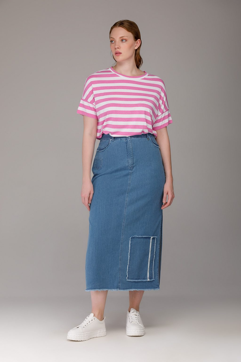 Лето — это солнце, цветы, пляж, море, путешествие и счастье. А самое главное это, конечно же, летние юбки. Кокетливые мини и элегантные макси, насыщенных или постельных оттенков с пёстрыми принтами и однотонные. Вместе с HELMIDGE расскажем об этом более подробно. Юбка из вареного денима С чем носить длинные юбки? Длинная макси-юбка зрительно удлиняет силуэт, добавляя фигуре изящества и стройности. В таком наряде каждая модница будет выглядеть чарующе сдержанно и скромно, при этом не будет лишена естественной привлекательности. Чтобы подобрать идеальную пару и составить интересный образ для юбки макси, важно соблюдать контрасты в объеме. Облегающий и вытянутый низ лучше носить в тандеме с объемным верхом, и наоборот. Летом юбку макси можно одевать с тонкими блузами в этническом стиле или с контрастными футболками. В холодную пору выбирайте укороченные вязаные пуловеры и свитера oversize. При этом обязательно соблюдайте цветовой баланс, тогда стильный и выдержанный casual-образ вам обесп