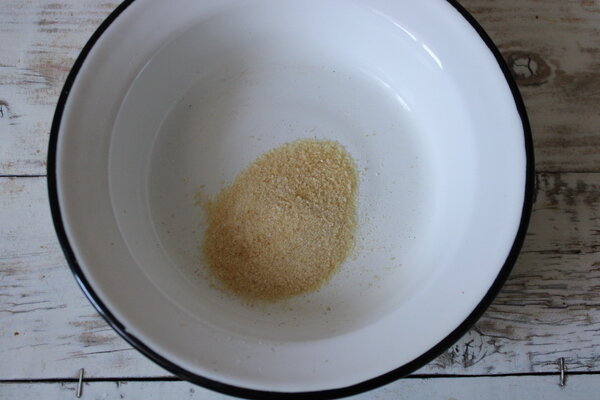 Ягоды, джем или мед – 10 г. 1. Приготовим продукты для желе. Кефир выбираем такой жирности в зависимости от того, какую калорийность готового десерта мы можем себе позволить. Такие сладкие добавки, как сахар, мед, варенье или ягоды используем по своему усмотрению. 2. Желатин распускаем в холодной кипяченой воде в соответствии с рекомендациями, указанными производителем на упа