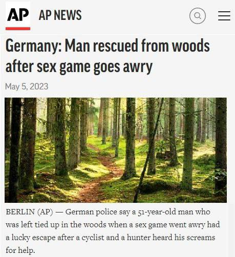 В Германии мазохиста чудом спасли в лесу после того, как секс-игра пошла не по плану.
