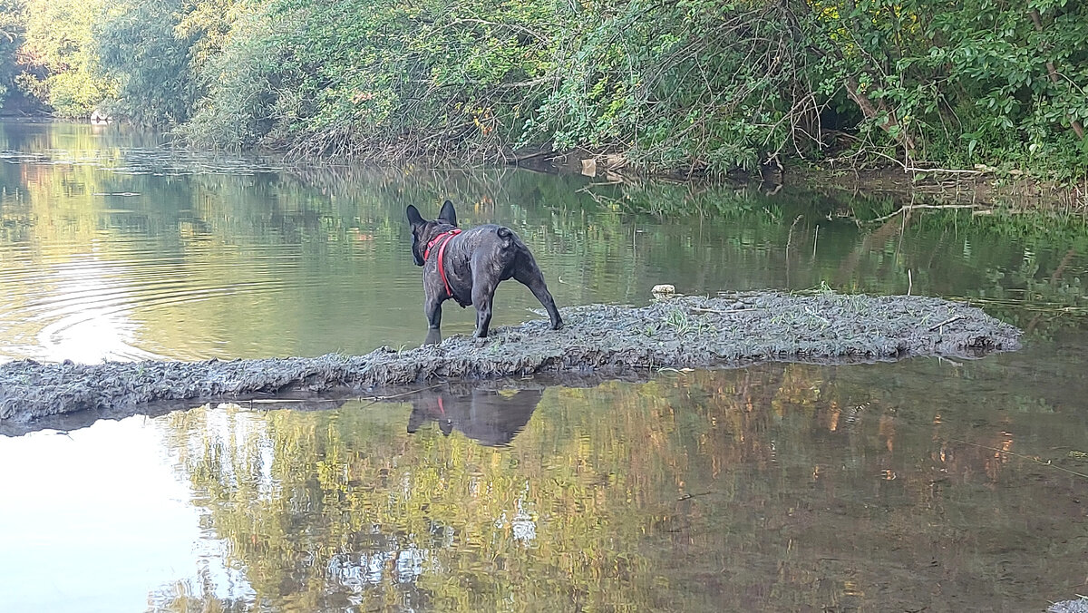 Всем привет, на связи снова Филя ! День сегодня выдался неплохой, и я решил сводить Ма на озеро. Она там зачем-то кидала мне палку в воду, чтобы я её доставал. Пытался ловить рыбу, но к сожалению не получилось. Мы шли домой через поляну, там была моя подруга. Мы играли, кувыркались, бегали. И я даже извалялся в грязи, какой же это кайф! Но счастье было не долгим... Мама смыла с меня всю лечебную грязь, когда мы пришли домой
