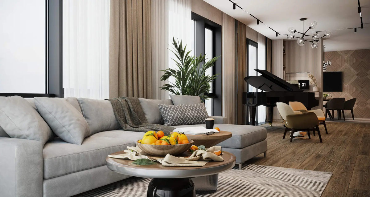 Теплая палитра с включением приятных глазу бежевых оттенков по праву считается интерьерной классикой. В этом обзоре мы расскажем о дизайне квартир в бежевых тонах на примере проектов из нашего портфолио.