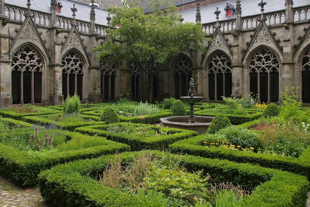 Во-первых, монастырский сад состоял из внутреннего дворика (клауструм) с красивыми цветами - для прогулок монахов и их размышлений, фруктового сада, овощного огорода (хортус) и аптекарского огорода с пряными травами (хербуляриус). Все они могли находиться в разных частях монастыря. Так, в швейцарском Санкт-Галлене, который традиционно приводится как пример образцового монастыря Средних веков, фруктовый сад был одновременно и кладбищем. Могилы ведь не мешают расти фруктовым деревьям, хотя это и жутковато. Но сразу вспоминается цветаевское: