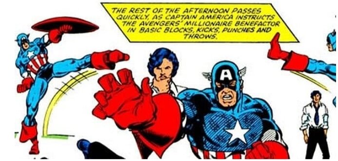 Без одного из своих костюмов Железного человека Тони Старк простой человек, но это не значит, что он абсолютно бессилен. На протяжении нескольких лет он тренировался с разными людьми, чтобы не быть полностью беспомощным без брони, но один из самых ярких примеров была спарринг-сессия со Стивом Роджерсом. Это было показано в классической сюжетной линии «Демон в бутылке», и фанаты надеялись, что этот момент перенесут когда-нибудь на экран. Но видимо не суждено.