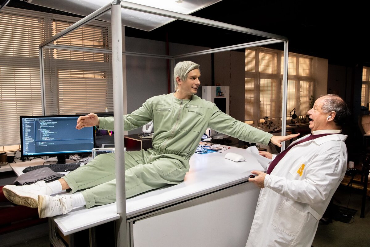 Комедийный сериал «Кибер Иван» про актера-неудачника, вынужденного изображать робота-прислугу, стартует 28 августа на СТС. В проекте сыграли Александр Метелкин, Янина Студилина, Камиль Ларин, Анастасия Акатова, Дмитрий Астрахан и Анжелика Каширина, сообщает пресс-служба телеканала. По сюжету актер-неудачник Иван (Метелкин) случайно ломает новейшего андроида, созданного по своему подобию. Чтобы помочь отцу-инженеру (Астрахан), Иван вынужден изображать робота в доме регионального министра инноваций Бориса (Ларин) и его жены Риты (Студилина). Актеру предстоит бороться не только с угрозой раскрытия, но и с чувствами к неприступной дочке чиновника (Акатова). Готовясь к съемкам, Александр Метелкин занимался с хореографом и пересматривал фильмы про искусственный интеллект. Вживаться в образ ему также помогали грим и костюм: комбинезон, серые линзы и парик. Янина Студилина, которая сыграла супругу чиновника, отметила, что не готова мириться с роботом в доме: «Кибер Иван пугает мою героиню. И я
