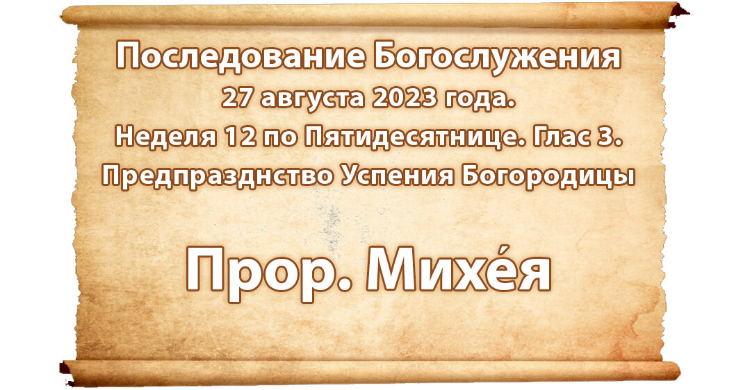 По ссылке на страницу последования богослужения можно скачать в разных форматах службу на 27 августа 2023 г: Неделя 12 по Пятидесятнице. Предпразднство Успения Богородицы. Прор. Михея. Глас 3. Прямая ссылка на полное последование богослужения 27 августа 2023 г. на резервной странице. Резервная страница проекта: https://posledovanie.my1.ru/index/0-2 Телеграм канал проекта https://t.me/posledovanie/ Телеграм чат https://t.me/ChatPosledovanie Поддержать Последование: молитвой, репостом, добрым словом или материально: http://posledovanie.ru/pomoshch-saytu/