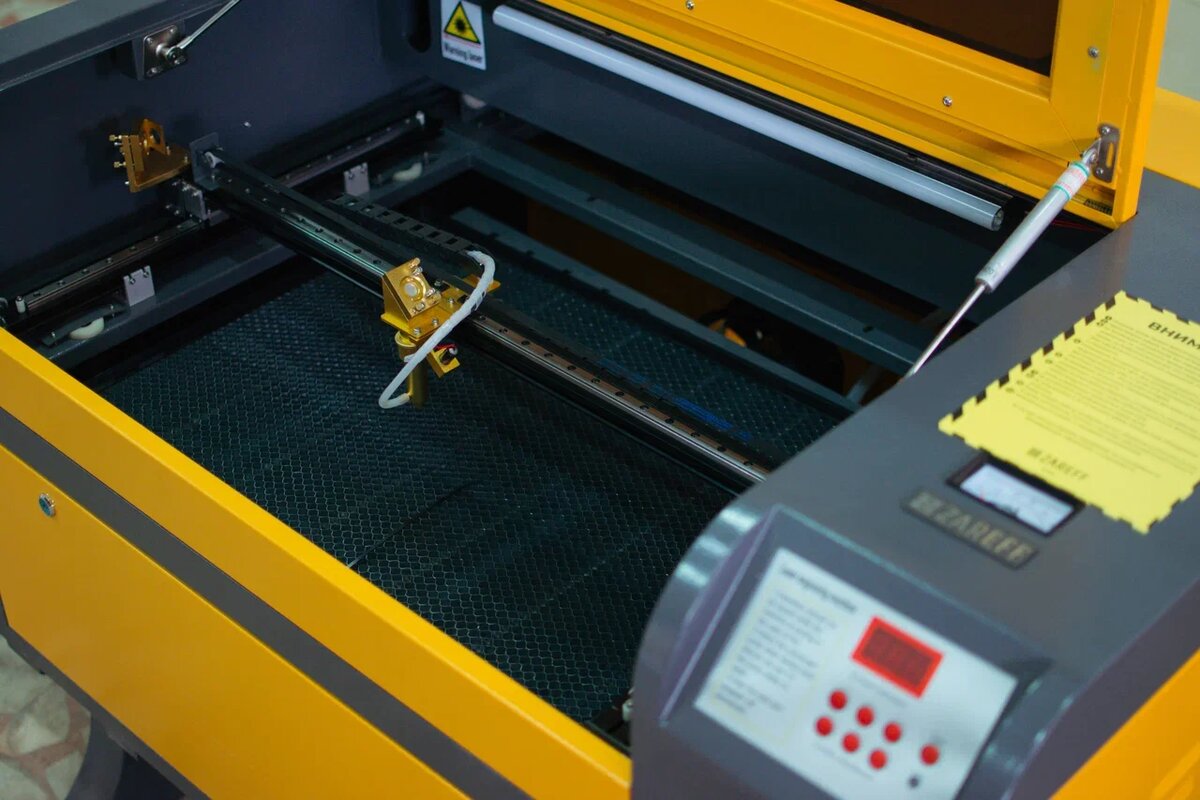 В качестве инструмента при лазерной резке используется лазерный луч, проходящий через фокусирующую линзу, которая сводит его в крошечное пятно и увеличивает плотность энергии лазера. При непрерывном режиме работы он нагревает обрабатываемый материал до температуры плавления, полученный расплав удаляется струей воздуха под высоким давлением. В результате получается аккуратный и точный разрез. Одним из основных комплектующих лазерного станка является лазерная голова. Она размещается в рабочей части станка и воздействует лазером на заготовку в требуемой области. Выбор лазерной головы осуществляется на основе выбранных параметров фокусирующей линзы и мощности лазерного излучения.