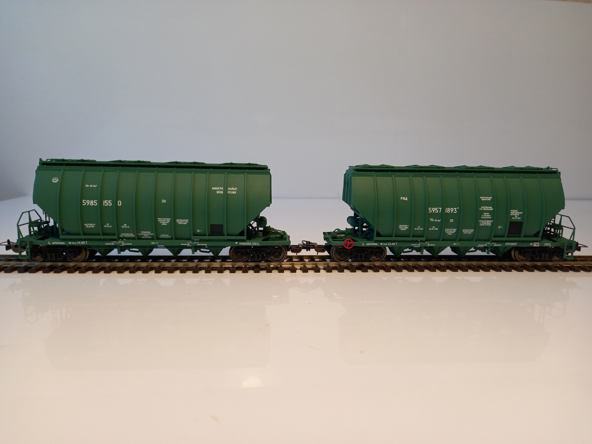 Моделист Дмитрий Агапкин представил общественности модели хопперов для перевозки минеральных удобрений типа 19-3116. Данная серия хопперов-минераловозов была первой из семейства подобных, но на отечественных дорогах встречается редко, ее вытеснила более массовая модель 19-3116-04. Отличительной чертой данного хоппера является бункер с ломаным торцом (частично вертикальная стенка) и соответственно больший полезный объем - 96,5 м3. К сожалению, разнообразия окрасок и собственников у данной модели не наблюдается, присутствует только вариант "Уралкалий". Модели хопперов типа 19-3116 изготовлены в масштабе 1:87 (типоразмер Н0). Поручни, рычаги расцепителей и тормозные тяги изготовлены из медной проволоки. Сцепки и колесные пары приобретены на Али Экспрессе. Окраска моделей была осуществлена акриловыми красками и лаками Vallejo. Декали для нанесения надписей были напечатаны Вадимом Энскалером. Модели отличает высокая детализация. Канал "ПАНТОГРАФ". Информация и фото Дмитрий Агапкин. Уважаемы