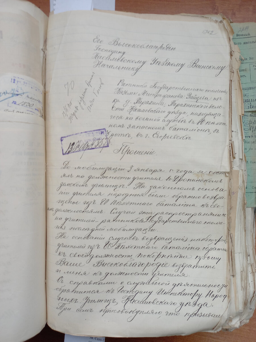 Вот такие прошения писали зачисленные на военную службу ратники из учителей на имя военного начальства, чтобы их демобилизовали.
