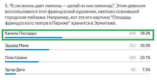 Сможете набрать 12 баллов? Сегодня в тесте: Мадагаскар, "после нас хоть потоп", Екатерина II, остров Врангеля, Чинтамани, Перикл, тоса-ину, русский композитор, Верхняя Вольта и кайзершмаррн. Добрый день, дорогие читатели! Самым сложным вопросом в тесте №866 (средний балл 10,47 из 15) оказался... Художнику пришлось оставить идею рисовать пейзажи за городом, т.к. врачи рекомендовали ему избегать сильного ветра и пыли (из-за болезни глаз). Камиль Писсарро заселялся в разные отели Парижа и создавал свои знаменитые городские пейзажи с балконов. В Эрмитаже хранится пять городских пейзажей Писсарро. Тест №880