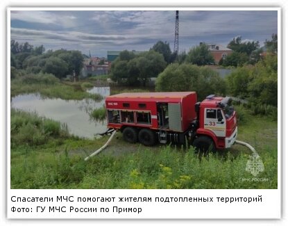 По информации Главного управления МЧС по Приморскому краю, на 10 территориях региона затоплено 258 приусадебных участков, больше 170 за сутки освободились от воды, сообщает ИА PrimaMedia со ссылкой на пресс-службу ведомства. Нарушено транспортное сообщение с 8 населенными пунктами в Красноармейском районе, к трем из них организованы лодочные переправы. Сотрудники МЧС помогают в перевозке людей, доставке продуктов, медикаментов и необходимых вещей в отрезанные населенные пункты. В связи с прогнозируемыми 10 и 11 августа дождями, усилена группировка спасателей МЧС. В 7 муниципалитетах находятся 110 человек личного состава и 29 единиц техники.