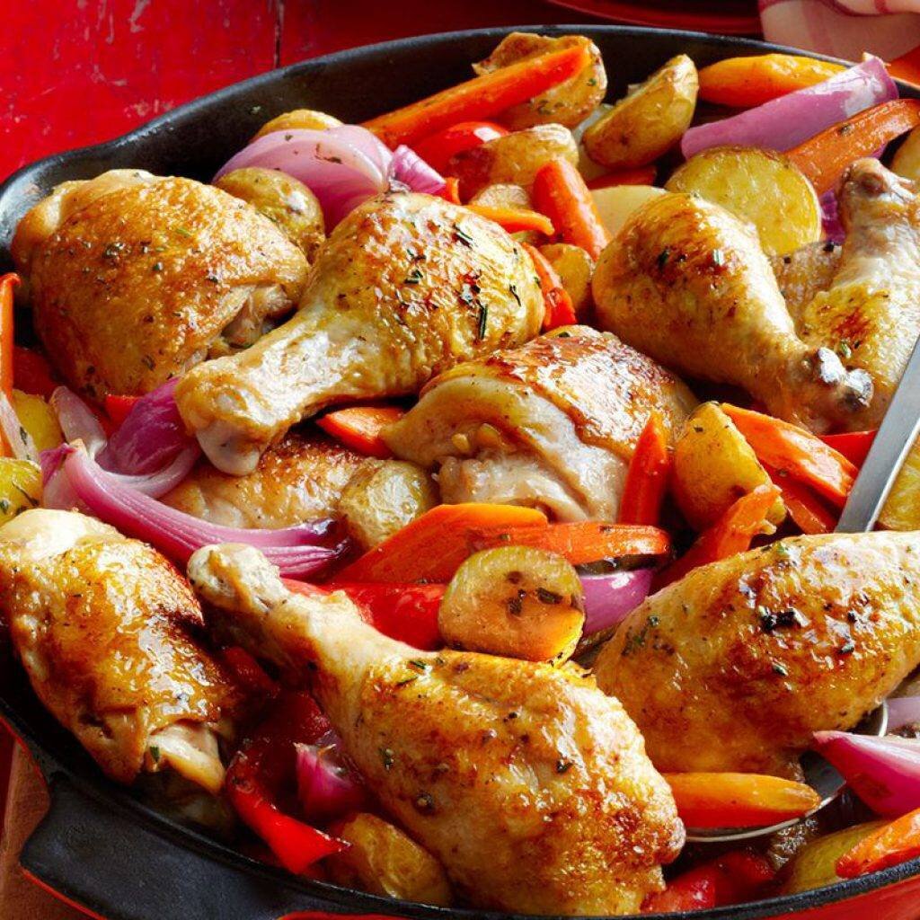 2. Куриница, запеченная с картофелем и овощами: