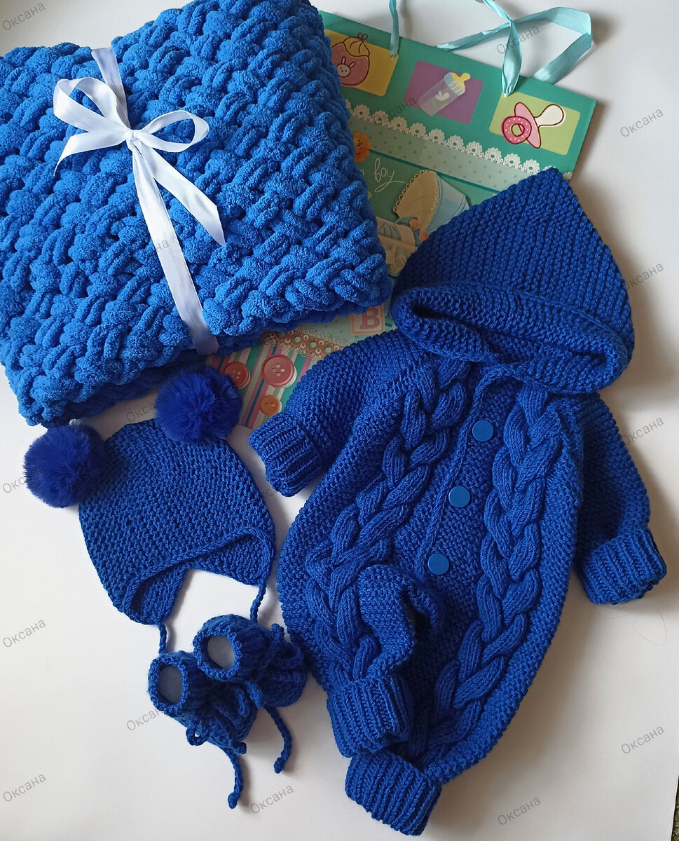 Уникальное предложение !!! Подарочный набор на выписку, на рождение,на крестины или просто в качестве оригинального подарока. Все, что нужно , в одном пакете: -комбинезон, шапочка, пинетки , плед , погремушка , держатель для пустышки , открытка, сумочка и подарочный пакет .
