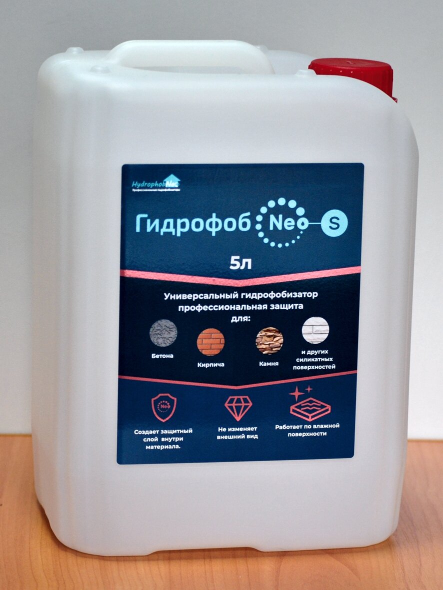 Это универсальный гидрофобизатор на спиртовой основе, подходит для обработки бетона, ячеистого бетона, силикатного и керамического кирпича, натурального и искусственного камня, тротуарной плитки. Гидрофобизатор HydrophobNeo-S разработан на базе хорошо зарекомендовавших себя с 2004 года гидрофобизирующих составов ТМ Неогард и обладает улучшенными характеристиками, универсальностью, средней ценой.