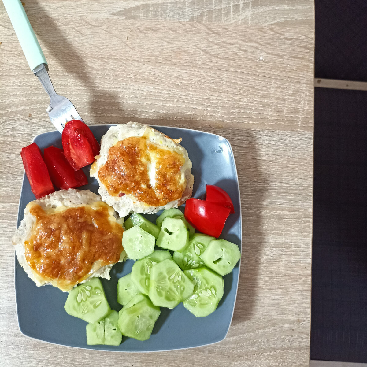 Что-то замоталась в домашних делах и совсем забыла про питание. Вот что кушала вчера , на завтрак была яичница с беконом и кофе . В обед совершенно есть не хотелось ,сгрызла две маленьких сардельки с сыром. И ужин котлетки из грудки с помидором и сыром .