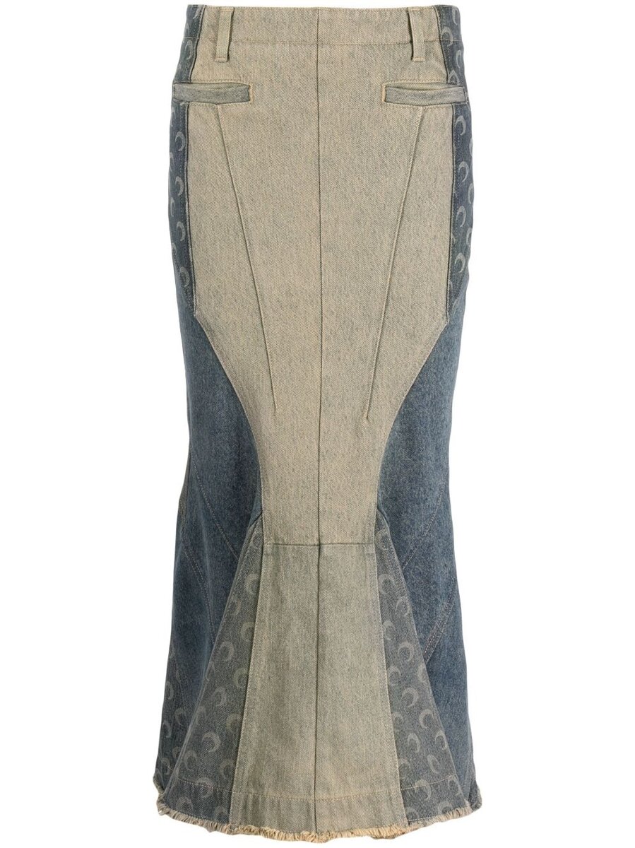 Мы все как-то уже настолько привыкли к джинсовым брюкам, что начинаем забывать о джинсовых юбках. А ведь именно юбки придают образу женственность и шарм, что подтверждают и знаменитые модельеры. Например, такая двуцветная расклешенная джинсовая юбка от Marine Serre: Согласитесь, что юбка совершенно потрясающая, да еще и с 3D эффектом! Единственный недостаток - это то, что для этой юбки требуется идеальная фигура (это субъективная точка зрения от человека, которая такой фигурой не обладает 😂). Следующая юбка от LOEWE изготавлена из синего денима со вставками из выстиранного и окрашенного в готовом виде денима. Юбка с асимметричной талией и украшает ее кожаная нашивка с логотипом. Вообще на мой взгляд ни разу не дизайнера такие нашивки сами по себе украшение любых моделей, но я могу и ошибаться. Юбка во всех ракурсах представлена ниже: Balmain использует стратегически расположенные складки, чтобы создать четкую, но объемную форму этой синей джинсовой юбки, изготовленной в Италии из хлоп