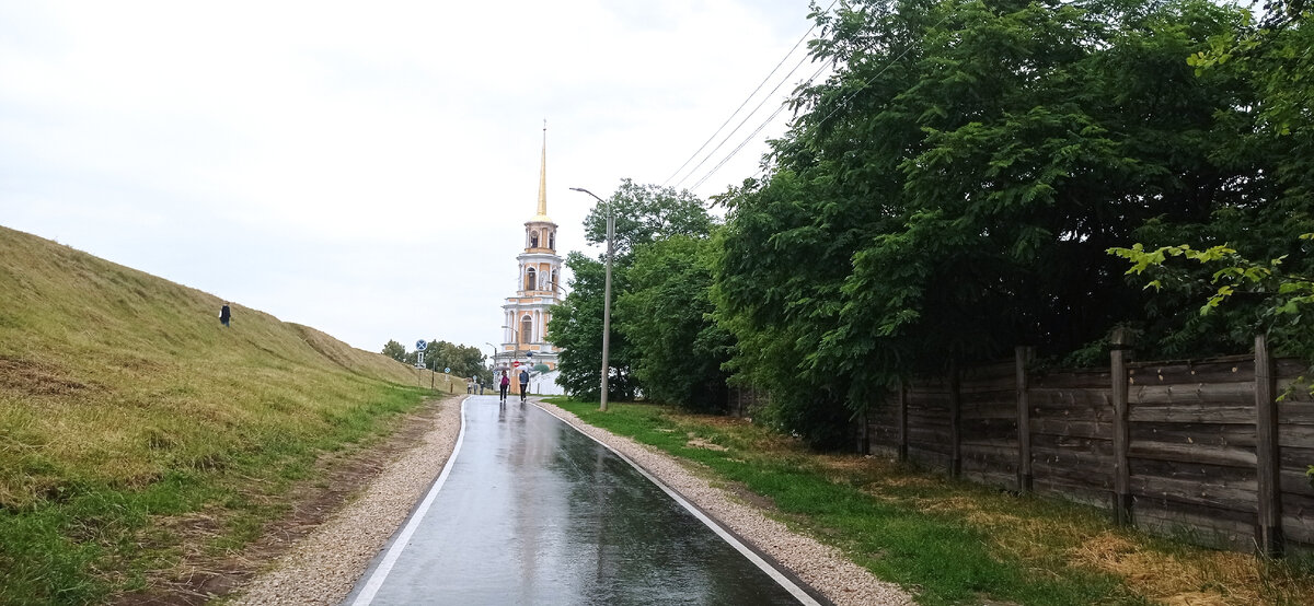 «Начинается земля, как известно, от Кремля». Писал в своё время Владимир Владимирович. Не Путин. Маяковский. Поехал в Рязанский кремль. Посмотреть. С чего начинается земля Рязанская. Навигатор привёл на улицу с таким же названием. Улица Кремль. Перед последним взгорком, когда навигатор сказал «до конца маршрута 300 метров», строгие знаки. Остановка запрещена. Испугался. Свернул направо. Оставил машину. И полез в горку. Вдоль крепостного вала. Испугался, как оказалось, зря. На входе в Кремль- автостоянка. Довольно свободная. В будний день. По крайней мере. Вон, сразу за стеной машинки видны. - Больно низенька стена- скажет читатель- Для Кремля. И правильно скажет. Стена не кремлевская. Монастырская. От кремлевских стен и башен давно ничего не осталось. Только покатый вал. На котором они когда-то стояли. А это- даже не стена. Ограда. В конце XIX века поставлена. Вокруг Спасского монастыря. На территории кремля был. В московском кремле- целых пять монастырей было. Ни одного не осталось. А
