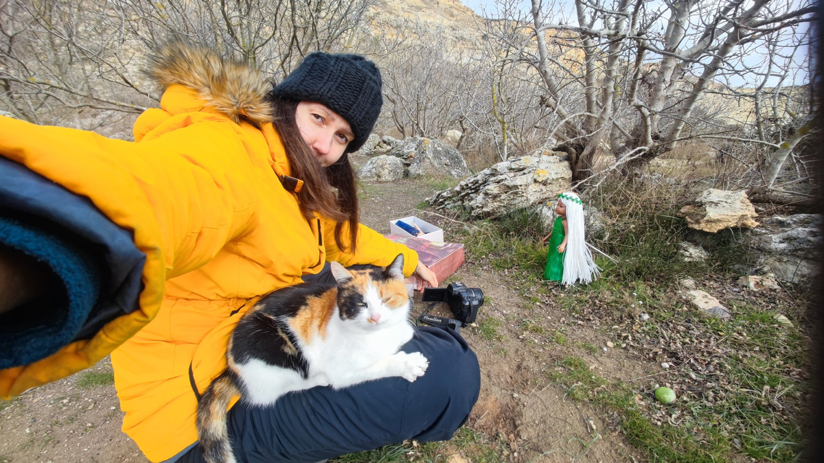 Часто я хожу фотографировать не одна, мой парень составляет мне компанию, а иногда и помогает добраться на машине до задуманного места фотосессии. Он же иногда фотографирует меня, как я фотографирую кукол) Полностью погружаясь в творческий процесс, я практически перестаю чувствовать и замечать, что происходит вокруг, а позы, в которых я фотог