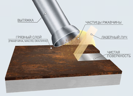 Результатом этого процесса является чистая поверхность, без ржавчины и грязи, поскольку лазер испаряет слои ржавчины, не причиняя никакого необратимого вреда основному материалу.