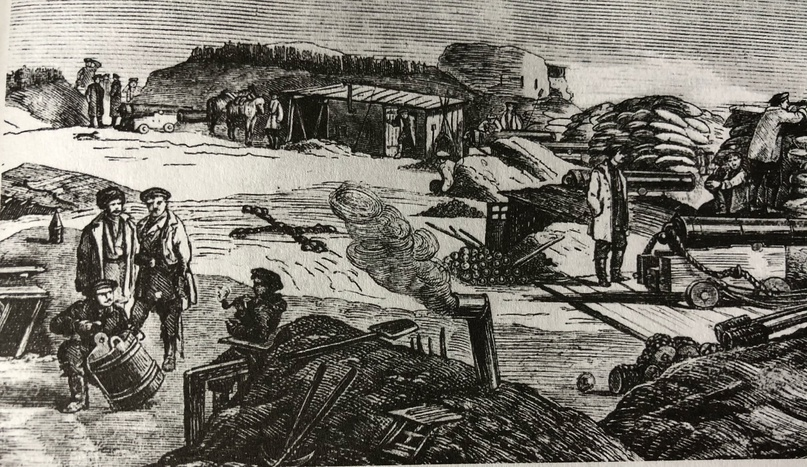 Иногда в головах туристов, да и не только, возникают странные вопросы, на которые я не то, что не знаю ответ, мне просто непонятно - откуда такие вопросы.? Зачем? Как они возникают? Какое принципиальное отношение и значение они имеют к теме разговора, содержанию книги или статьи, экскурсионному рассказу и показу? Вот возник тут вопрос о количестве ядер в кресте, который выложили матросы на месте смертельного ранения адмирала В. А. Корнилова. И, конечно, обсуждение и взгляды прикованы к настоящему кресту, то есть тому, который выложен в настоящий момент на Корниловском бастионе на Малаховом кургане. Много версий, которые тут же терпят крах, если взглянуть на прежнее изображение креста, которое сохранилось в исторической литературе. Если верить В. Тимму, который таки был в том времени и тех событиях, изначально крест выглядел иначе. Можете попробовать пересчитать ядра опять и снова задаваться вопросом об их количестве, а меня увольте от этого бессмысленного занятия. Не стоит искать мис