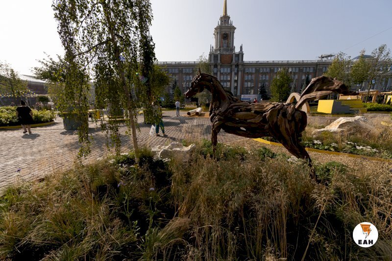 Следующим летом на площади 1905 года в Екатеринбурге может появиться водоем с зелеными островками. Об этом заявила директор фестиваля «Атмофест» Юлия Сорокина. «Есть у нас такая новая сумасшедшая идея. Мы хотим площадь 1905 года затопить и сделать из нее полностью водный объект. А на островах разбить сады. Это пока та идея, которая идет на будущее», – рассказала Сорокина. По ее словам, на площадке появятся так называемые сады Семирамиды — растения будут свисать сверху. Напомним, в этом году фестиваль «Атмофест» проходит под другим названием – «Екатеринбург-300». Мероприятие, которое состоится с 11 по 20 августа, будет посвящено юбилею уральской столицы. Посетителей ждут не только развлечения, но и возможность вспомнить прошлое Екатеринбурга, а также заглянуть в его будущее. Для гостей площадки предусмотрено два входа – через «лесоповал», в память о том, что до первого завода здесь валили лес, и через «зону будущего». Посетителей ждут экскурсии, музыкальные и театральные постановки, буд