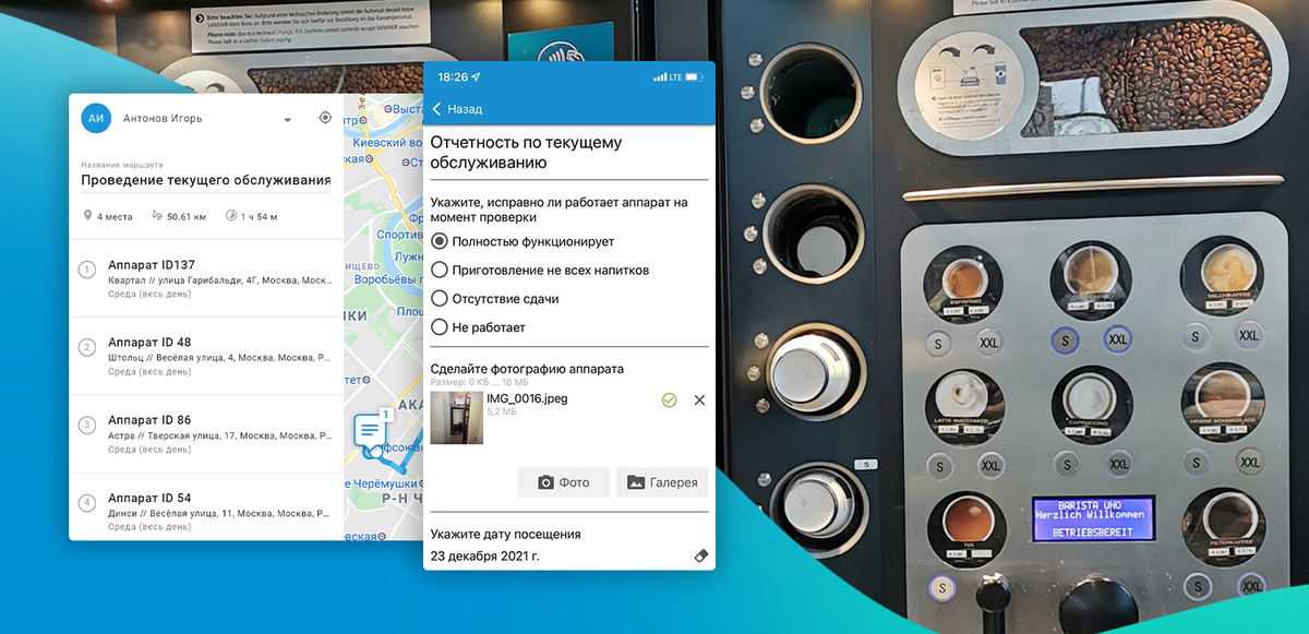 Руководителю вендинговой компании важно знать, что оператор кофейных аппаратов действительно проводил обслуживание, иначе это приносит бизнесу убытки. Убедиться, что сотрудник приехал на место, помогут фотоотчеты и GPS-метка, в которой будет указано время, дата и адрес.