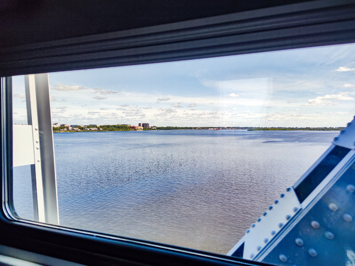 Что такое достопримечательность, друзья? В привычном понимании? Думаю, не ошибусь, если предположу, что для большинства людей это какой-нибудь дворец, храм, памятник, музей. Такие, знаете, классические места, про которые пишут в путеводителях. Но некоторые удивительные вещи выпадают из внимания туристов, даже если находятся под ногами. В буквальном смысле. Это фото, друзья, сделано из окна поезда, который привёз меня из Москвы в Архангельск. Что вы видите? Ну, понятно, Северную Двину — это тоже выдающаяся достопримечательность, но сейчас речь не о ней. А о мосте, через который едет поезд. Мост этот поистине уникальный — это САМЫЙ северный разводной мост в мире. Если быть точнее, он подъемный — центральный пролёт моста (длиной 88 метров) поднимается вертикально вверх, как лифт. Длина моста 1094 метров, расстояние от воды до моста 13,4 метра. На сколько поднимается пролёт, я найти не смог — такое ощущение, как будто эта информация в интернете отсутствует, да и наш «национальный поисковик