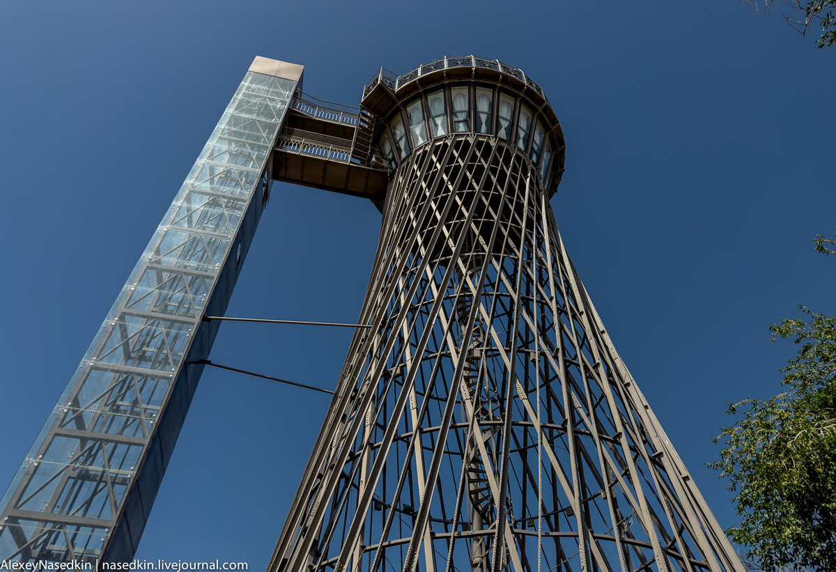 Вот она - сама объективность пристального взгляда в исторический разрез. Благодаря или вопреки, в СССР человеческим гением нередко создавались совершенно потрясающие вещи - начиная от архитектурных объектов и заканчивая поэзией. Сегодня небольшой рассказ про первое. Почти все слышали про выдающегося инженера и архитектора Владимира Григорьевича Шухова и вряд ли кто незнаком с его главным творением - знаменитой столичной Шуховской радиобашней. Однако далеко не каждый из нас знает и о других следах "русского Эйфеля" во множестве городов - Краснодаре, Подольске, Николаеве, Черкассах, Борисове. Есть подобная красота и в Бухаре. Полюбуйтесь-ка! Сооружённая в 1927—1929 годах на площади Регистан, напротив бухарского Арка, данная башня изначально выполняла водонапорную функцию. Однако в 1968 году деревянная обшивка её верхушки сгорела, повредился водяной бак, после чего сооружение утратило свою первоначальную функцию, перестав эксплуатироваться и по сути став бесхозной. В 1990-х годах (опять ж