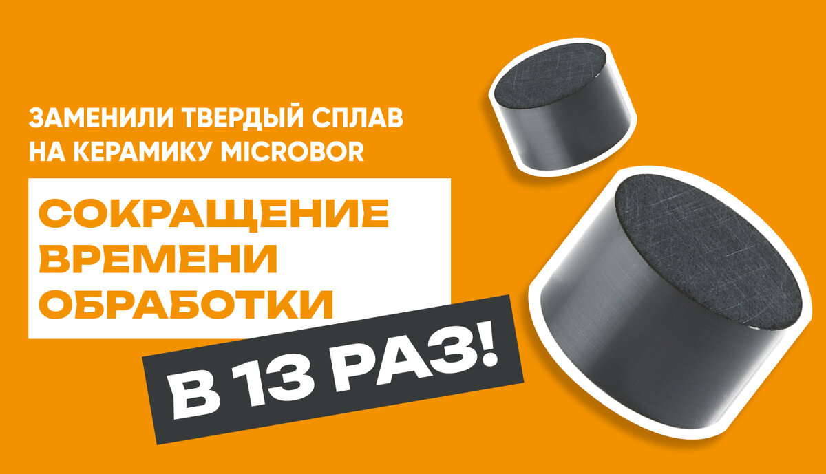 Этим летом проводили испытания на станке 1А525МФ3, где необходимо было обработать экспериментальную деталь из порошковой жаропрочной стали ВЖЛ14Н. На заводе применялся инструмент из твердого сплава, и результаты были неудовлетворительными. С целью сокращения времени обработки проведена опытная работа – токарная обработка детали керамическим инструментом отечественного производителя «Микробор». Инструмент: Керамическая пластина RNGN120700T01020N-S000 M8030G Оснастка: Резцовая державка CRGNR 2525M-12CE Так как обработка велась по необработанной корке, поверхность детали после выращивания была с неровностями, острыми кромками, биением. Ожидалась высокая ударная нагрузка, поэтому менеджером и инженером компании Microbor принято решение применить армированную вискоризованную керамику. В керамике сорта M8030G (армированная, вискоризованная керамика), помимо основы из оксида алюминия Al2O3, в качестве армирующего компонента применяются нитевидные высокопрочные кристаллы SiC (30...40%). В резу