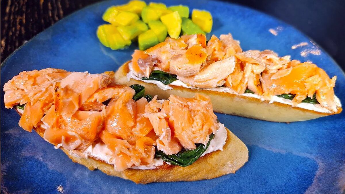 Идеальный завтрак. Брускетта с лососем, творожным сыром и шпинатом ☕️